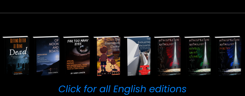 Συλλογή 4 λογοτεχνικών έργων του Diam Consta σε μια ειδική έκδοση. Διηγήματα και σύντομα μυθιστορήματα (προσωπική ανάπτυξη, αυτο-βελτίωση, αυτο-εκτίμηση). Μια σειρά από εξαιρετικά ευφάνταστες, απίστευτα πρωτότυπες και γεμάτες συναισθήματα, ιστορίες, που ξεχειλίζουν από σουρεαλιστικό συμβολισμό και ζωντανές περιγραφές.